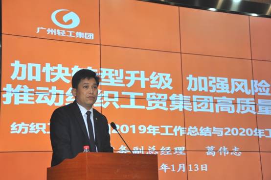 广州轻工集团副总经理兼纺织工贸集团党委书记、董事长林虎充分肯定了纺织工贸集团2019年取得的各项成绩,并对2020年的工作提出三个要求:一是在党建引领经营工作上实现新突破;二是在做强做大主业上实现新突破;三是在深化改革上实现新突破。