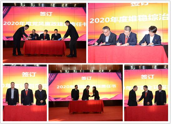 集团领导与企业代表分别签订了2020年党风廉政建设、安全环境、维稳综治、计划生育、经营目标的责任书。