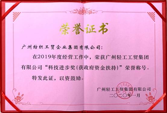 喜报:纺织工贸集团获得2019年度广州轻工集团“经营贡献突出奖”和“科技进步奖”荣誉称号