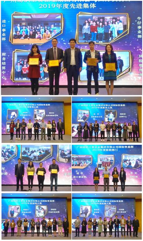 随后,会议进入先进表彰环节,国际贸易部党总支副书记、副总经理朱剑碧对获得纺织工贸集团先进荣誉称号的集体及个人进行了通报表彰,宣读了表彰国际贸易部2019年度先进集体和先进个人的决定并进行了授奖仪式。