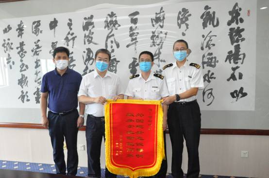 5月28日,纺织公司党委书记、董事长林虎带队拜访黄埔海关及黄埔老港海关,并代表公司分别赠送了“为国把关忠诚廉明,服务企业勤勉高效”、“服务企业抗疫情,专业高效促发展”的锦旗,受到了黄埔海关综合业务处处长汤勇、老港海关关长彭也澎等领导的热情接待。