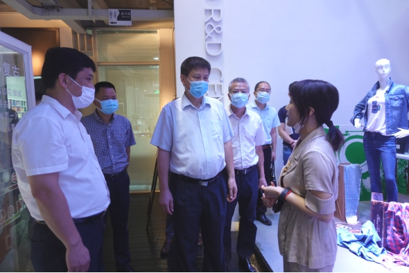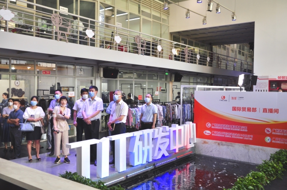 第127届网上广交会正如火如荼地进行,6月18日上午,广州轻工集团党委副书记、副董事长、总经理曾郴湘,副总经理陈家园一行莅临纺织公司国贸部设在TIT国际品牌研发中心的直播现场指导工作,纺织公司领导班子、国贸部领导班子陪同。