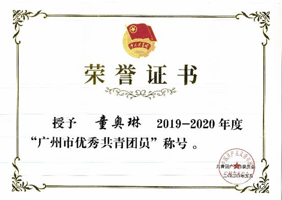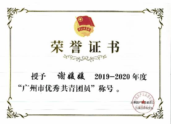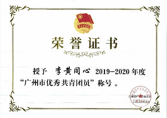 近日,共青团广州市委员会通报表彰了2019-2020年度广州共青团先进集体及先进个人。纺织公司属下广州大学纺织服装学院团委荣获2019-2020年度“广州市五四红旗团委”称号,纺织公司国贸部童奥琳、纺织服装学院谢媛媛、纺织服装学院李黄同心荣获2019-2020年度“广州市优秀共青团员”称号。