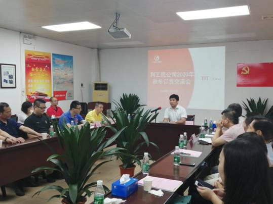 9月18日,利工民在公司六楼会议室举办了 2020年秋冬订货交流会。纺织公司常务副经理葛伟志莅临指导,TIT国际品牌研发中心领导、经销客户及利工民销售团队共40余人参加。