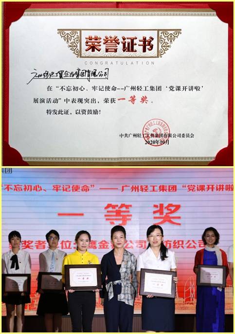 纺织公司获“不忘初心,牢记使命——广州轻工集团‘党课开讲啦’展演活动”一等奖