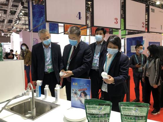 上级领导对本次参展工作高度支持,广州轻工集团党委书记、董事长曾郴湘,党委副书记、副董事长、总经理林虎,副总经理陈家园也抵达了进博会展馆现场,并率纺织公司及轻出公司相关人员共同参观了展馆各区域,拜访了重点参展商,并进行了深度交流,探讨行业发展动态,共同发掘商机。