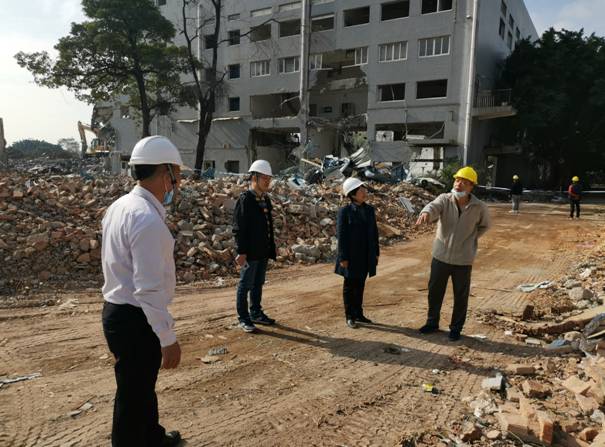 12月25日上午,广纺联党总支书记、董事长周逊姜带队前往南边路6号园区进行安全检查。目前,南边路园区内建筑拆除施工进入冲刺阶段,周逊姜一行重点检查了施工人员楼栋拆卸作业情况,要求现场相关工作人员严格落实隐患整治管理,确保施工安全。随后,检查组一行前往荔湾路125号园区检查,并向现场工作人员强调切实加强元旦期间安全生产工作,认真做好园区范围内的安全工作。