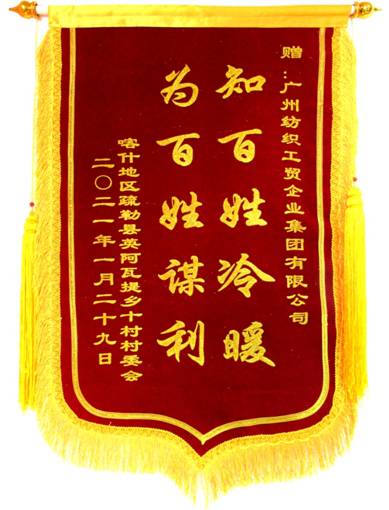 锦旗不仅代表着群众感激之情,也是对纺织公司积极主动承担社会责任的认可和肯定。纺织公司将把锦旗化为鞭策,今年以更饱满的热情回报社会,投身乡村振兴工作!