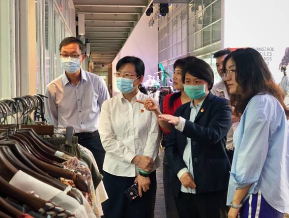 4月15日,纺织公司常务副总经理葛伟志、副总经理关勇莅临现场指导工作;4月19日,纺织公司党委书记、董事长简玮仪,党委副书记、副董事长、总经理朱璞真,党委副书记、纪委书记、工会主席丘海澜等领导一行莅临国贸部直播中心,对国贸部129届广交会直播营销工作进行调研,并就云上数字化营销进行部署。