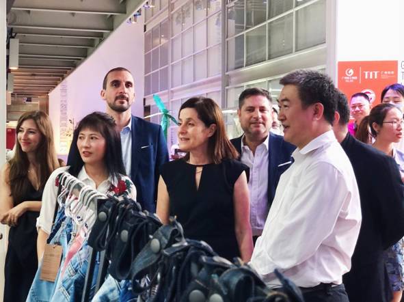 国贸部129届云上广交会“最时尚”受到各方关注与认可,客商访问数量节节攀升。4月22日,以色列驻华大使潘绮瑞一行莅临直播中心参观交流。广州轻工集团党委副书记、副董事长、总经理林虎及纺织公司领导陪同。