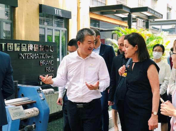 以色列驻华大使潘绮瑞一行对国贸部数字化营销下的VR展厅,新颖生动的多场景直播间,以及TIT国际品牌研发中心创意十足的新品时尚表现出浓厚兴趣。随后,双方就下一步合作,进行了深入的交流。