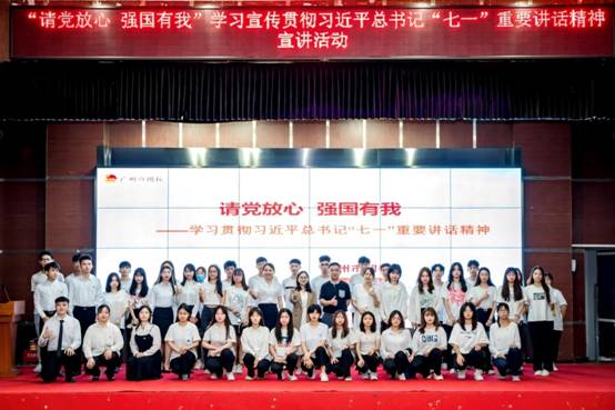 为认真学习宣传贯彻习近平总书记“七一”重要讲话精神,推动“学党史、强信念、跟党走”学习教育走深走实,引领广大团员青年更加坚定赓续红色血脉、传承红色基因,充分激发为实现中华民族伟大复兴而奋斗的青春动力,10月9日,纺织公司团委在广州大学纺织服装学院报告厅开展了“请党放心 强国有我” 学习宣传贯彻习近平总书记“七一”重要讲话精神宣讲活动。活动特别邀请了长期从事共青团、青少年教育培训工作,现任广东省青年讲师团成员、“广州市青年讲师团”暨“百人百讲”宣讲团成员的广州市团校袁珊老师前来授课。新入团团员、团干部代表共计140余人参加了宣讲活动。