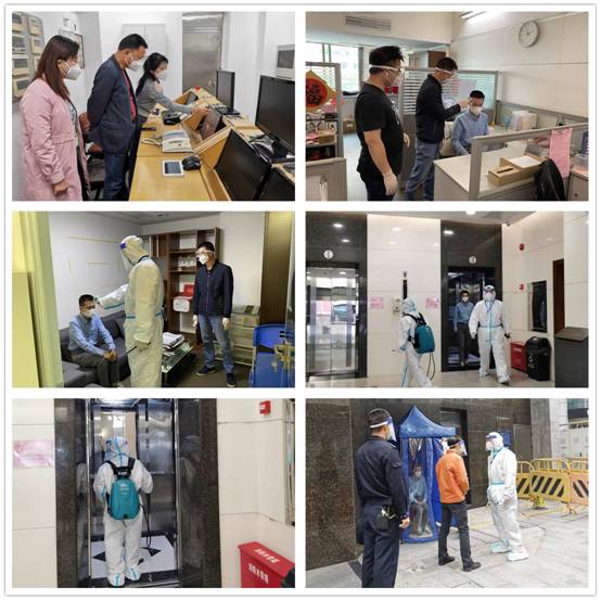 11点02分国贸部启动应急预案,防疫隔离组人员穿好防护服前来复核证实异常后,迅速通过专用电梯转移到广德大厦一楼临时隔离点进行隔离。同时通信联络组第一时间通知社区三人小组和环境消杀组进行环境消杀工作。