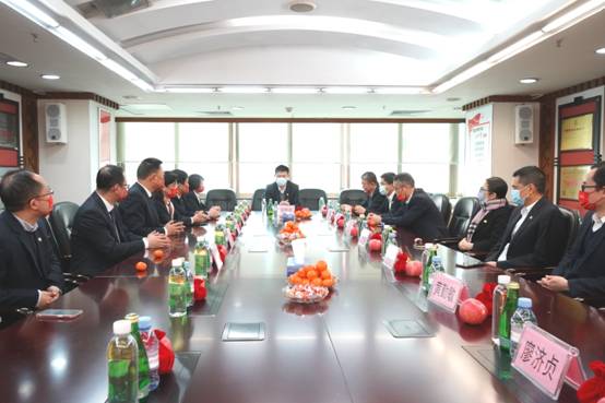 最后,领导们一行在公司14楼会议室进行了简短的开工座谈会。公司党委书记、董事长简玮仪向曾郴湘等一行领导汇报了首日开工情况和新年首月实现“开门红”的经营业绩。