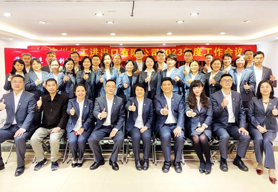 广州化工进出口有限公司2023年度工作会议于2023年1月13日下午圆满召开。会议由党总支副书记、工会主席李敏主持,纺织公司党委书记、董事长简玮仪及常务副总经理葛伟志等一行莅临会议并作出重要指示。