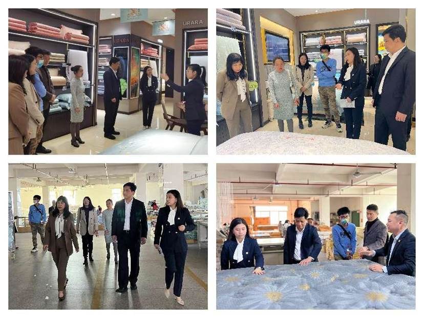 当天,纺织公司常务副总经理葛伟志带领利工民公司领导班子一行在悠莱家纺副总经理夏玉燕的引领下,参观了产品展厅、生产车间、仓库。大家现场交流、探讨,加深了解,增进信任。