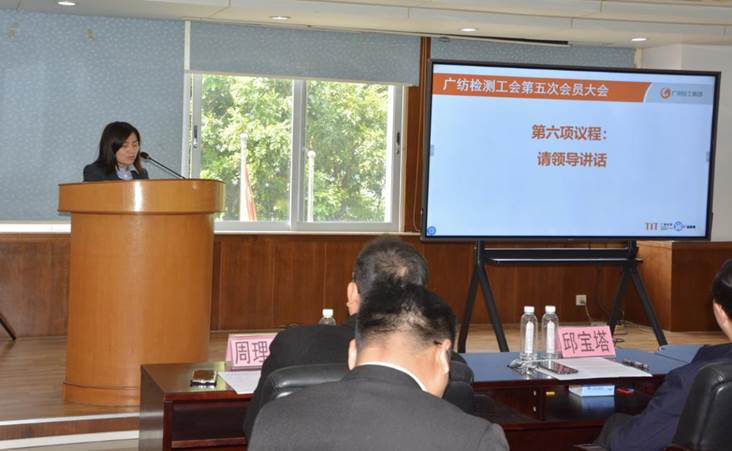 2月28日上午,广东广纺检测技术股份有限公司工会第五次会员大会暨工会换届选举大会在公司三楼会议室隆重召开。纺织公司副总经理关勇,广纺检测党支部书记、董事长谭婵等党政领导班子成员以及全体职工参加会议。会议由公司副总经理刘朝主持。