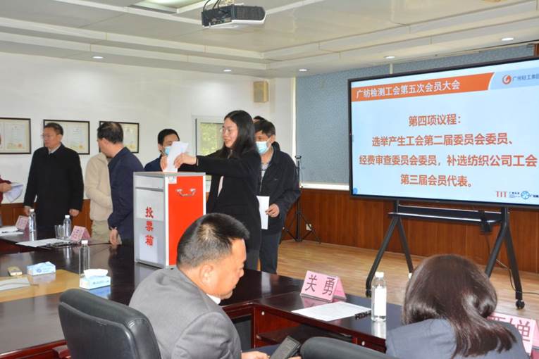 大会选举产生了广纺检测工会第二届委员会委员、经费审查委员会委员、补选纺织公司工会第三届会员代表。