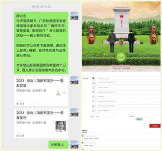 4月5日清明节,各党团组织纷纷开展“网上祭英烈”活动,登陆中华英烈网、广东英烈网等网站,发表感言,抒发情怀,寄托哀思,学习革命先烈的英雄事迹和崇高品德,在缅怀英烈的情怀中牢记党的历史、激发爱国情感。