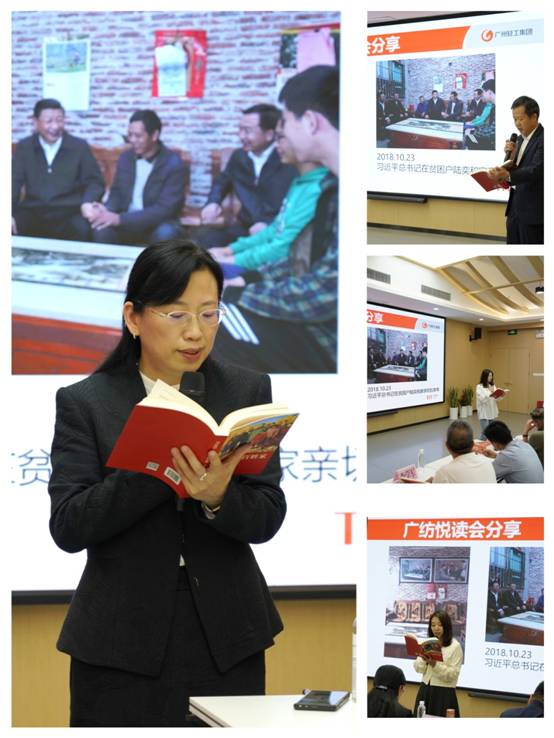 活动分为“诵好书,读奋斗”、“赏经典 聊奋斗”和“赏经典 聊奋斗”三部分。读书会上,公司党委副书记、纪委书记、工会主席丘海澜与三名读书代表领读《习近平走进百姓家》中英德市陆奕和一家的节选内容。丘海澜图文并茂的分享了她曾到陆奕和一家的所见所感。集体感悟了习近平总书记提出的“幸福都是奋斗出来的”的奋斗幸福观,也深刻感受到习近平书记的人民情怀,家国情怀,凝聚起家国同奋进共圆中国梦的力量,弘扬领袖时刻心系基层榜样力量,进一步鞭策着我们必须牢记工作必须扎根广大员工心声,用贴心聚创力量服务企业经营大局。