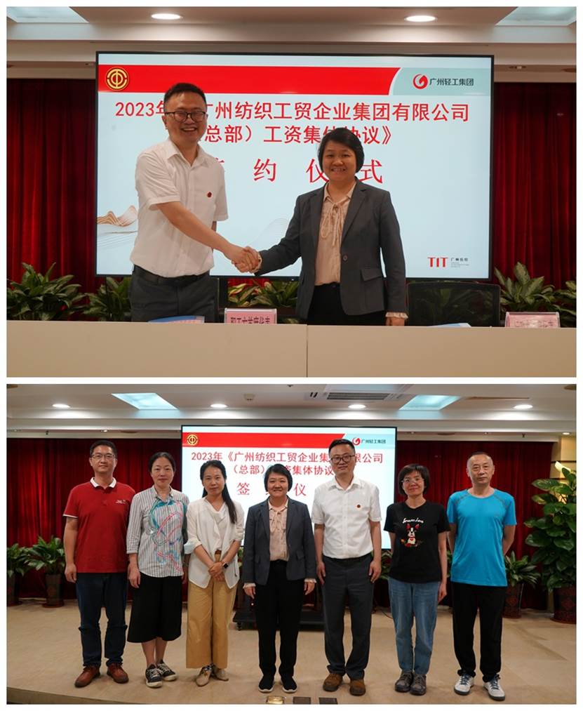 会议由纺织公司总部工会主席王勋主持,审议通过了《广州纺织工贸企业集团有限公司(总部)工资集体协议》、《员工守则》及《纺织公司总部工会关爱慰问会员办法》,并在全体参会职工的见证下,企业行政方首席代表与职工方首席代表签订了2023年《广州纺织工贸企业集团有限公司(总部)工资集体协议》。