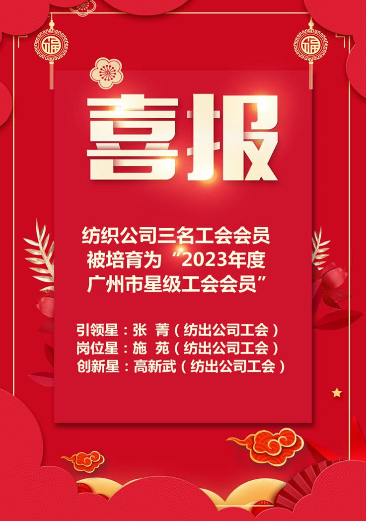 喜报:纺织公司三名工会会员被培育为“2023年度星级工会会员”