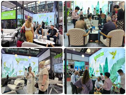 二是自主研发添“新绿”。“新绿”含量超标,绿色消费涌动。户外家具自有品牌“Everstar”携最新自主研发设计的产品亮相展馆。结合新颖的自主设计和优质的绿色用材,打造出防水防晒、耐磨耐脏的环保型户外家具产品系列。