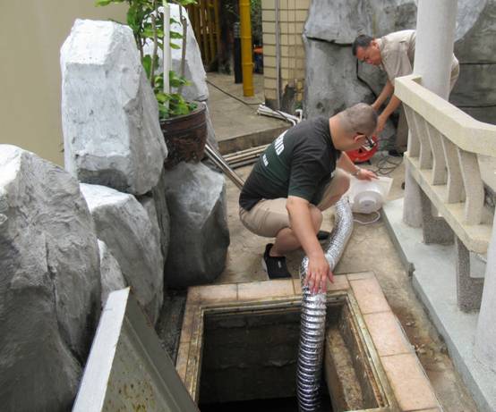 在食物中毒演练完成后,相关人员继续参加有限空间救援的演练。模拟在生活水池的清洗过程中由于池内氧气不足,导致作业人员窒息。指挥中心命令救援人员立即携带救援设备赶到现场,启动鼓风机对池内换气通风,救援人员穿上背带并固定安全绳后入池开展救援,成功转移池内人员到空气新鲜处交医护人员救治。本次演练让大家对有限空间安全作业的操作流程和救援措施熟记于心,筑牢了有限空间作业安全防线。