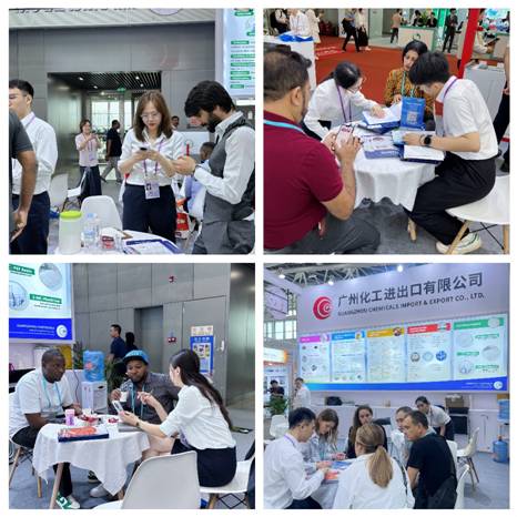 本届广交会,化工产品展位依然保持主通道地理优势,除常态化绿色布展以外,纺织公司与化工公司首次以统一风格进行连片布展,以全新的联合参展方式向全球客商展现创新专业的企业形象。把握绿色低碳产品市场的广阔机遇,化工公司坚持采用低碳生产工艺的新产品、新成果,展出以高效清洁、环保安全为亮点的日化洗涤、水处理、陶瓷化学系列产品;展会现场设置互动体验区,运用数字移动屏动态展示产品使用场景,开展首日即吸引了大量客商驻足,与参展团队进行深度接洽,为开拓新渠道、发展新市场奠定了良好的开端。