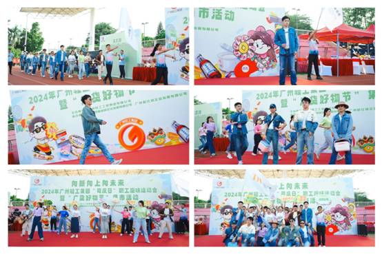 在运动会出场仪式上,纺织公司代表队时尚亮相,展示旗下新品牌产品,身穿自主设计的“GOGO”牌牛仔系列,手挽轻巧实用的“冰大师”塑料箱,踏歌伴舞生动演绎“美好生活,轻工相伴,向新向上,梦想璀璨”的开心快乐剪影,巧妙推广轻工“广货”品牌文化,赢得全场热烈互动和雷鸣般掌声!