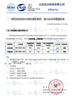 近日,广纺检测收到了北京中实国金国际实验室能力验证研究有限公司组织的NIL PT-4745 沥青防水卷材拉伸测试、NIL PT-4746 沥青防水卷材撕裂性能(钉杆法)测试能力验证结果满意证书,以及北京亚分科技有限公司组织的APICT-PT-202430 纺织品总铅和总镉含量的测定能力验证结果满意通知单!