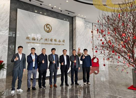 In celebration of the official opening of Shuangqiao (Guangzhou) Co., Ltd.’s new office in Nansha,a delegation led by Mr. Ge, Executive Vice President of TIT (Guangzhou Textiles Industry & Trade Holdings Ltd.),along withMr. Lin, Chairman of Guangzhou Chemicals (Guangzhou Chemicals Imp. & Exp. Co., Ltd), Mr. Chen, Business manager of Pharmaceutical Department, senior overseas business personnel Leo and Humen from the Food Additives Division, visited the newly established Nansha base, and was warmly received by Mr. Xu, Chairman of Shuangqiao Group, Mr. Tan, Sales Directorof Shuangqiao Group, and Mr. Li, Foreign Trade Managerof ShuangqiaoGroup.