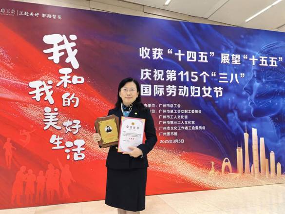 2025年3月5日,在第115个“三八”国际劳动妇女节来临之际,纺织公司党委副书记、工会主席、女职委主任丘海澜凭借在女职工工作中的卓越表现,获选为广州市“女职工首席关爱官”。这一荣誉不仅是对丘海澜同志个人工作的高度认可,更是对纺织公司工会及女职工委员会长期致力于女职工关爱工作的充分肯定。