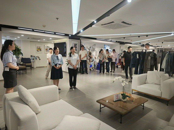 在工作人员引导介绍下,轻出公司同仁一行观看了纺织公司企业宣传片,参观了纺织公司展厅,详细了解了纺织公司发展历史沿革、当前基本情况以及党建引领企业发展的特色亮点等。