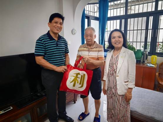 在庆祝中国人民解放军建军98周年之际,8月1日,纺织公司常务副总经理葛伟志代表公司,带队开展“八一”建军节走访慰问活动,向梁彤炜、肖翼辉、张丽尧、刘坤弦等在职及离退休的退役军人、军属送去组织的关怀与节日祝福,并送上精心准备的慰问品。