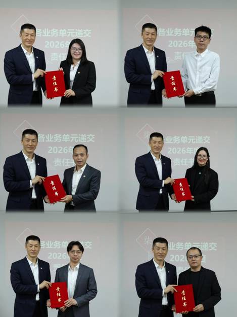 各业务单元、部门向公司领导递交2026年度各项目标管理责任书。