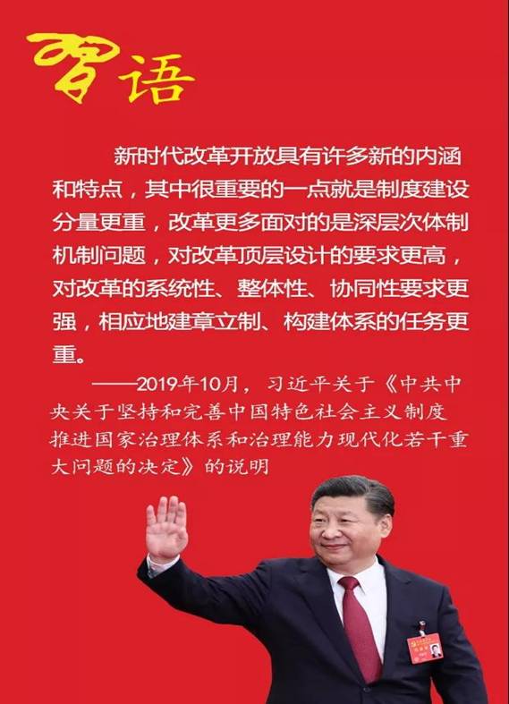 ——2019年10月,习近平关于《中共中央关于坚持和完善中国特色社会主义制度推进国家治理体系和治理能力现代化若干重大问题的决定》的说明
