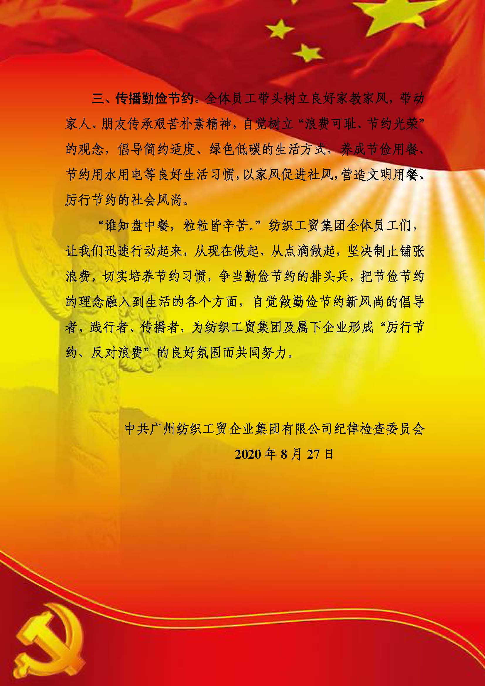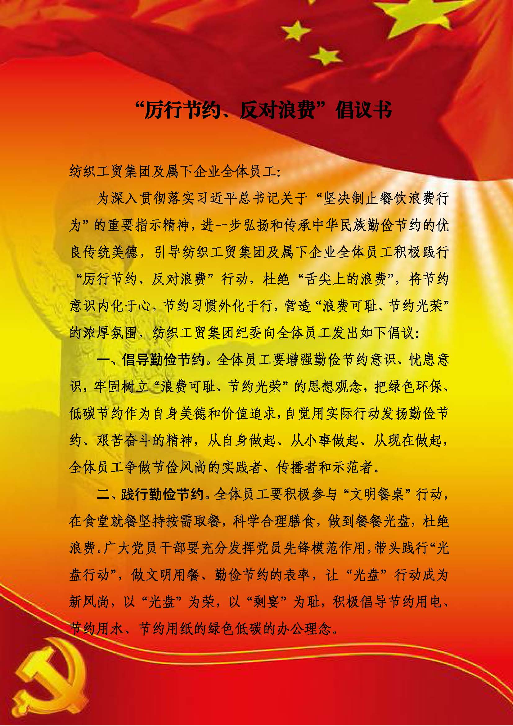 “厉行节约,反对浪费”倡议书