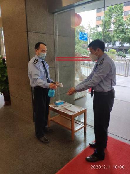 三是实干防控。在春节放假前抓紧采购口罩、测温仪、酒精等防控物资,并向员工发放口罩。春节假期,一线的值班领导、值班干部以及门岗等积极应对防控工作,对管理的广德大厦定时进行消毒,登记每名来访人员并测量体温、手部消毒。同时制定方案,筹备复工后疫情防控工作,并对大厦保洁、厨房、维修、保安等人员均作了防疫工作安排。