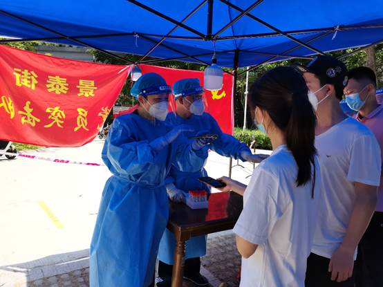 张湘军是纺织公司纪委办主任。她的爱人时爱明是广州市教育局机关机纪委二级调研员、工会主席。“我和爱人都是老党员了,我们更应该在这场战‘疫’中勇担使命。”当白云区出现本土确诊病例需要立马开展全员核酸检测工作时,她积极响应号召,同自己的爱人来到所居住的景泰街大金钟社区报名参加志愿服务,积极配合社区做好人员分类、检测指引、政策解释、秩序维护、上门摸查等工作。自从4月8日以来,他们已经连续在一线奋战6天。
