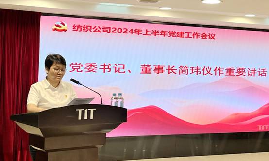 会议要求,做好下半年党委各项工作,要深学笃行习近平总书记关于党的建设的重要思想,深入学习领会党的二十届三中全会精神,不断激发以党建促发展的内生动力,提升意识形态工作引领力,认真履行全面从严治党主体责任,以实际行动彰显使命担当,为全面完成纺织公司各项改革发展任务目标提供坚强的政治动力和组织保证。