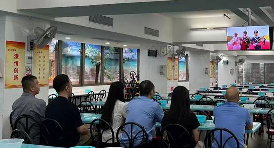 组织保洁、保安、维修和后勤员工观看,共同见证祖国强大军事力量和发展成就