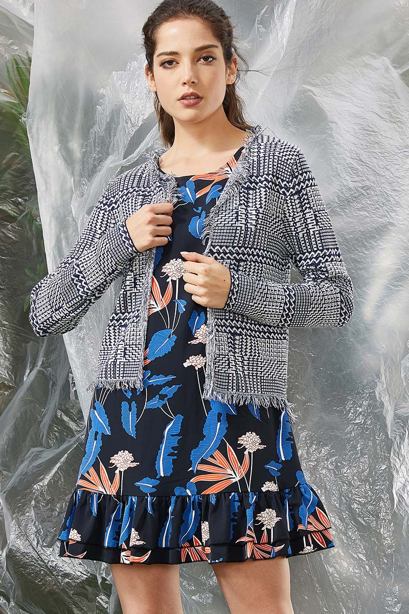 Women's products show the fashion diversification of women's clothing with the characteristics of different fabrics. The pattern of the fabric is mainly simple and elegant monochrome, and also with interspersing some elegant patterns to show the feminine side of women. Mainly retro, elegant, feminine, comfortable and fashionable style are the trend elements of this year.