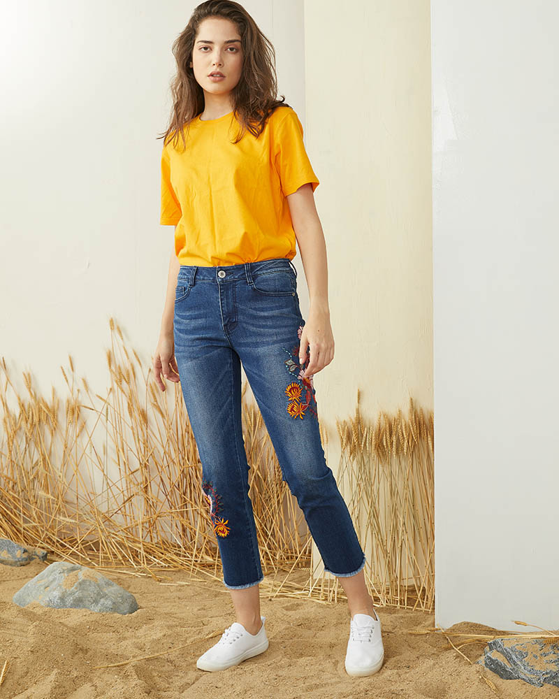 Women's jeans, denim jacket and men's casual pants are the well-known products of International trade Dept.. Among them, women's jeans and denim jackets consist of two series: retro series and street fashion casual series.