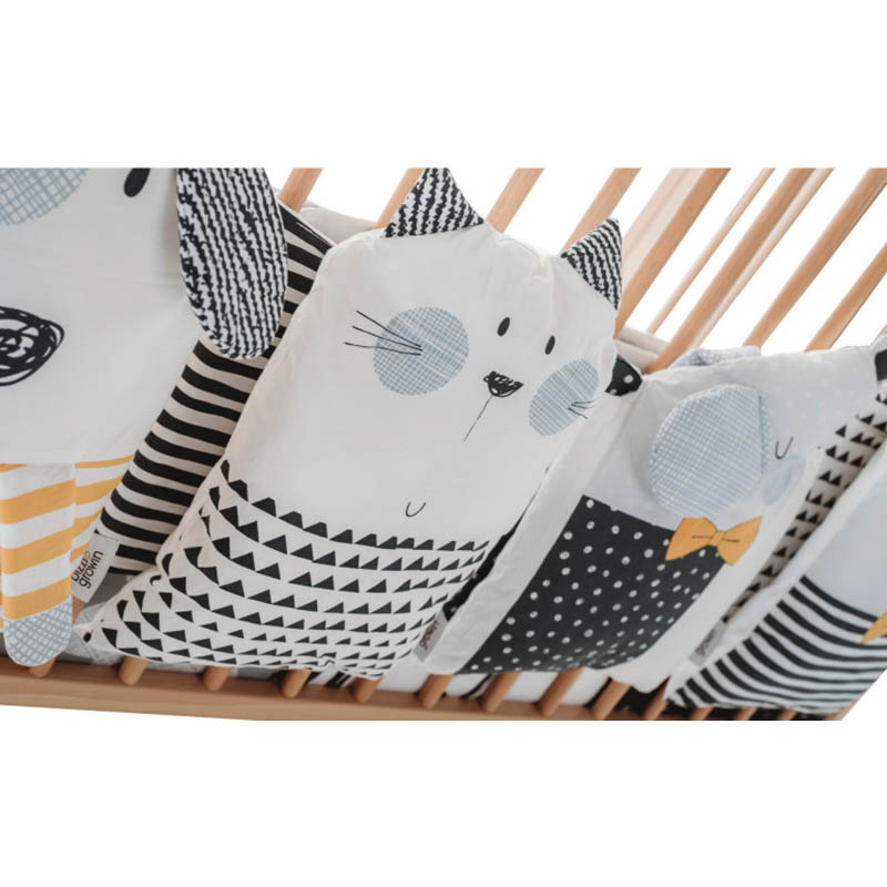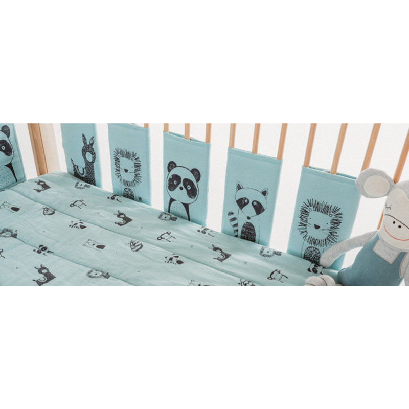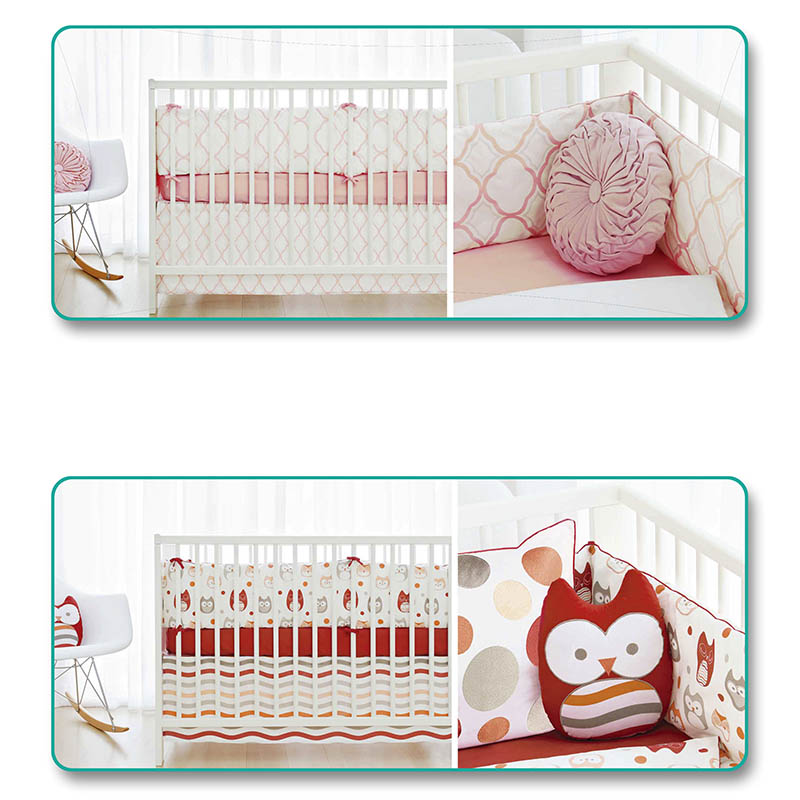 High-quality fabrics,active printing and dyeing,soft feeling,safety and environmental protection, and with good air permeability. The product adopts pre-shrink technology, and the size is just used after washing. Strengthen the edge process, it will more three-dimensional and more durable.Thicken bumper, high bounce back, no matter the baby left and right, still treated gently.According to customers' needs, we can make different sizes and patterns.