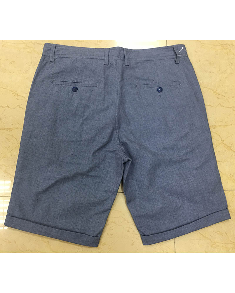 This bermuda is made of yarn dyed fabric. The contrast fabric on the waist and piping at the bottom side seam make the bermuda special.