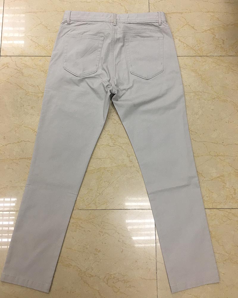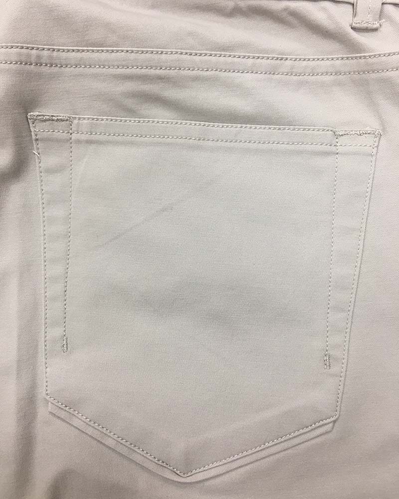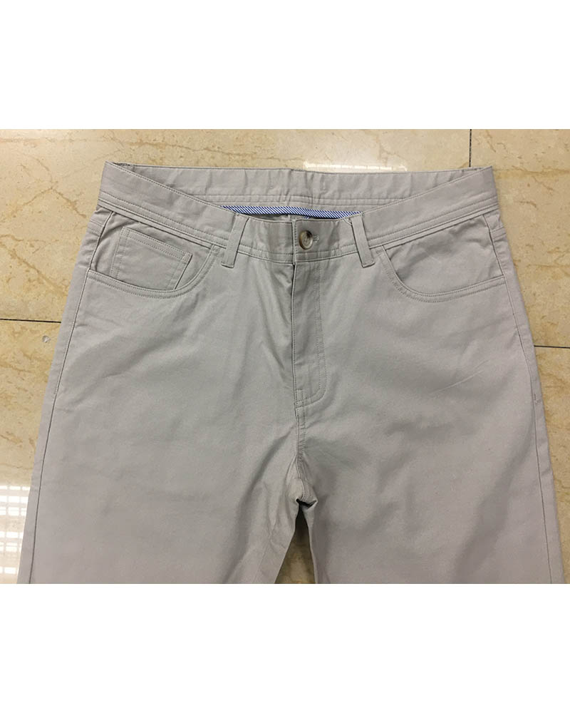 Fabric of this five pocket pants is cotton with spandex. The piping under the wasit and at the edge of the back pockets make the pants unique.