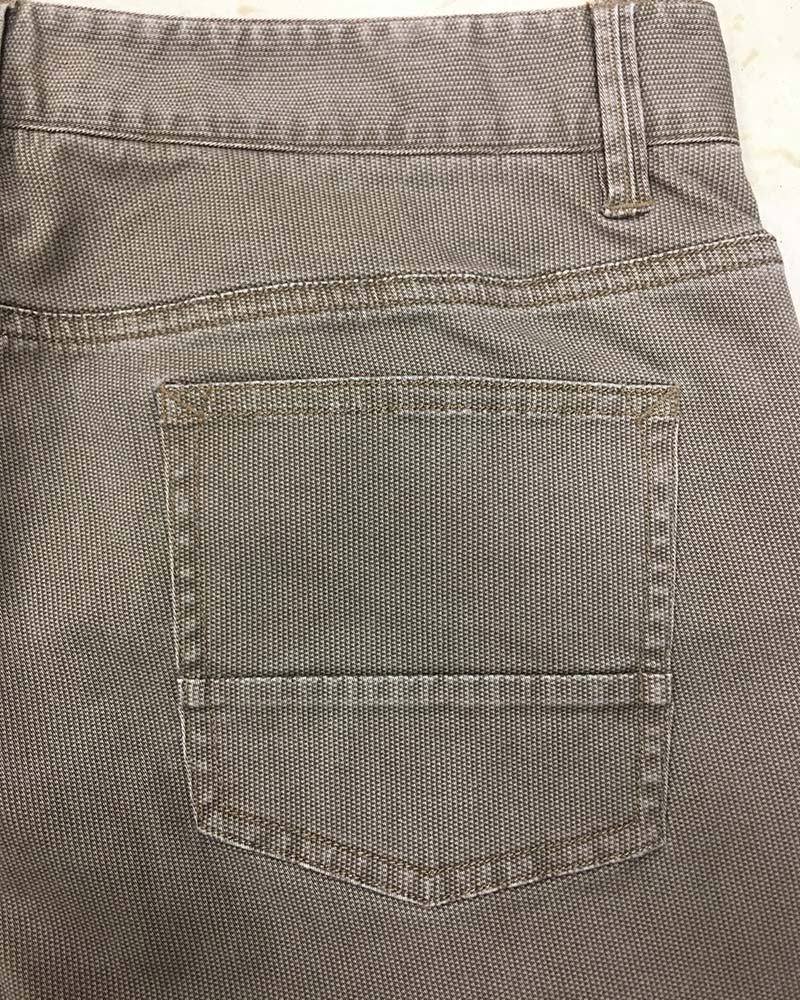Fabric of this five pocket pants is cotton with spandex. The unique printing on the fabric makes the pants special.