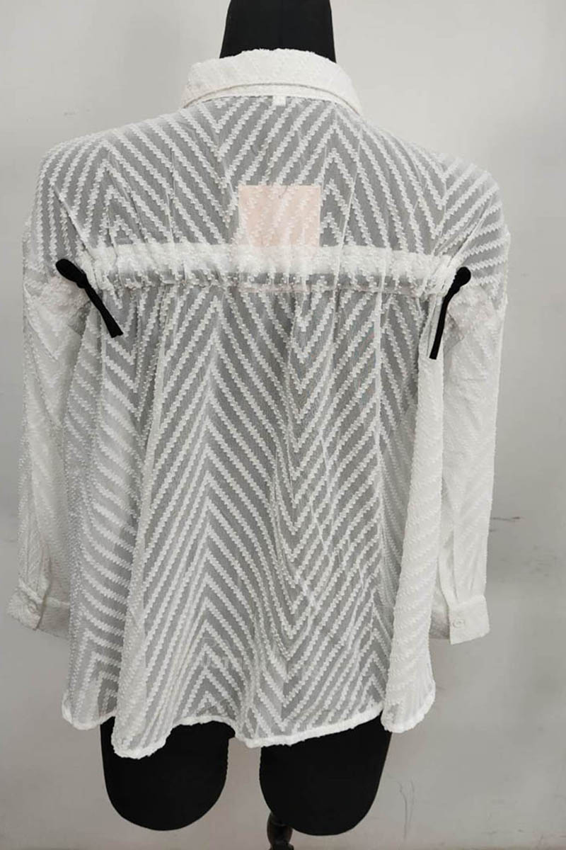 This fine textured jacquard shirt is a great addition to a casual look with jeans.Long sleeve length with buttoned cuff.Classic collar neck with buttons at front.Bacl with a feature tie.